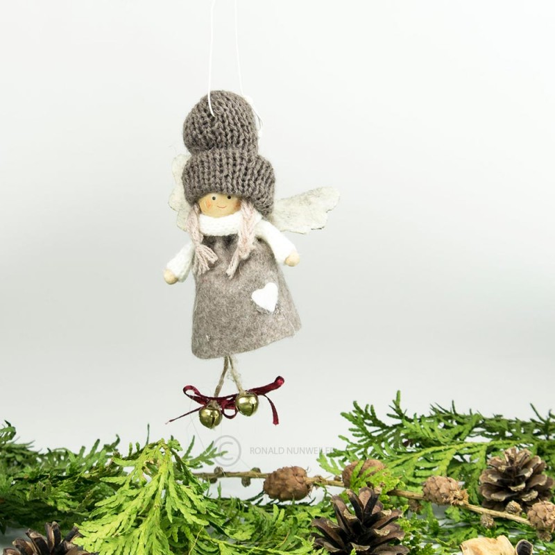 Filz Engel mit Glocken in braun H7cm